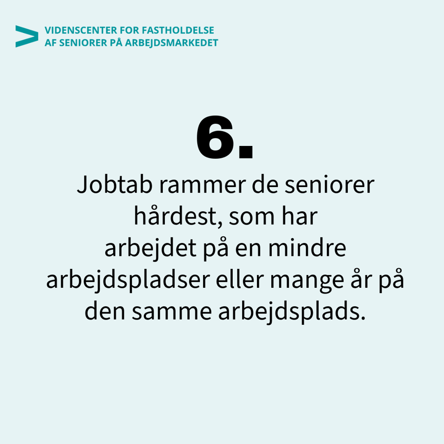 Samtidig har jobtabet de største konsekvenser for personer tæt på pensionsalderen, for dem, der har været ansat lang tid på samme arbejdsplads, for dem der har været ansat på en mindre arbejdsplads.