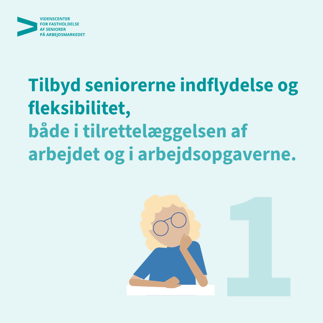 Anna Lange Rasmusen peger også på, at arbejdspladser kan understøtte, at seniorerne bliver længere tid på arbejdspladsen ved at sikre, at de får indflydelse på, hvordan, hvornår og hvor deres arbejdsopgaver løses: